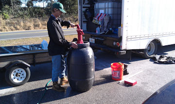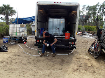 This is how we served water to the smaller kitchens. We used a 55 gallon drum with a hand pump.